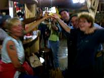 Am Abend wurde dann gefeiert. Vor dem Essen hat der Patron eine Flasche Champagner spendiert. Alles hat noch zusammengegessen und dann mußten wir uns leider von Cascao verabschieden. Er wohnt nicht auf do Barreiro und mußte zur Familie. Dafür haben wir noch gefeiert. Uff, seid bloß vorsichtig mit den selbstgebrannten Schnäpsen. Sie schmecken wirklich gut, aber ich kann Maracuja-Schnaps nicht mehr hören.